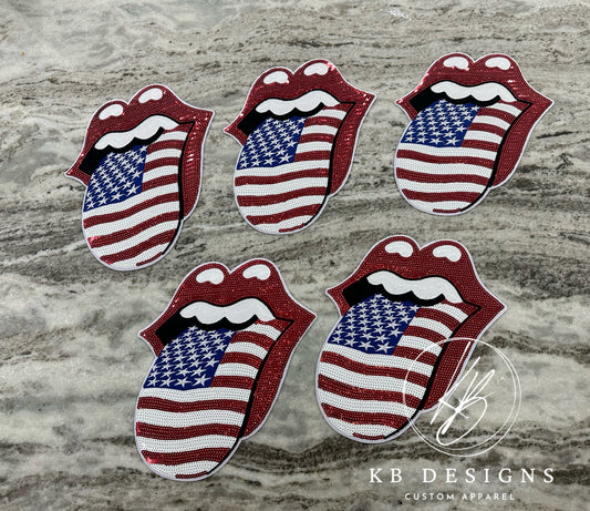 American Flag Mouth Sequin Tee