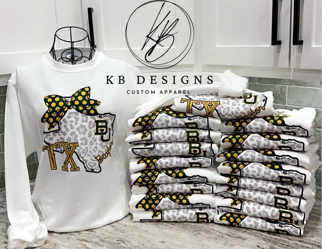 This item is designed and made in house at KB Designs by Christina. Expect a 3-4 week turn around time for in house custom graphics. Graphics are printed in house at KB Designs using a commercial DTF printer which is the newest technology in garment industry Direct To Film ( DTF) .
