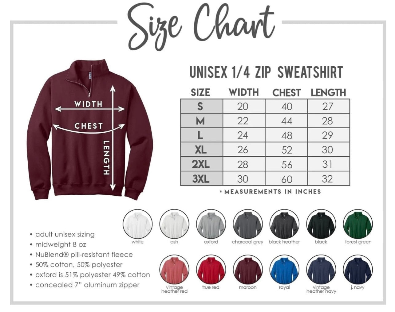 Make sure to select the correct size when placing your order, as we cannot accommodate size adjustments after the order is submitted. A size and color chart is available with photos for your reference.