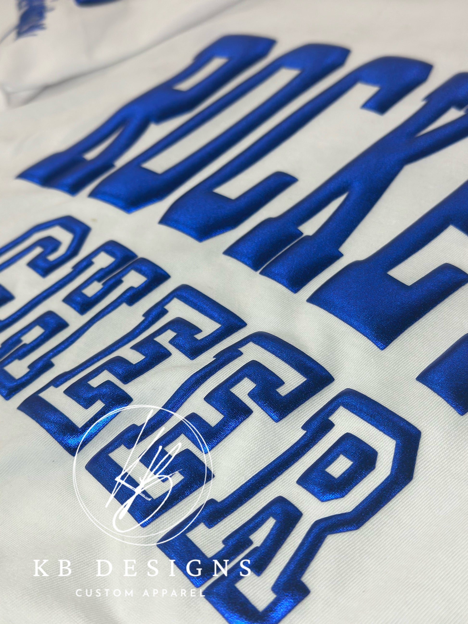 All items are made to order and handcrafted in-house at KB Designs. Because these products are made by hand, please allow some time for processing. Our graphic tees are printed using the latest technology in the garment industry known as Direct To Film (DTF). The estimated turnaround time for graphic tees, spangles, and tote bag designs is 2-3 weeks. For custom glitter and puff apparel, the turnaround time is estimated at 4-6 weeks. Please note that the fall season, which runs from August to November, is our busiest time of year, and during this period, orders may take up to 8 weeks to fulfill at the longest. These are estimated timeframes, and many orders may be completed sooner.