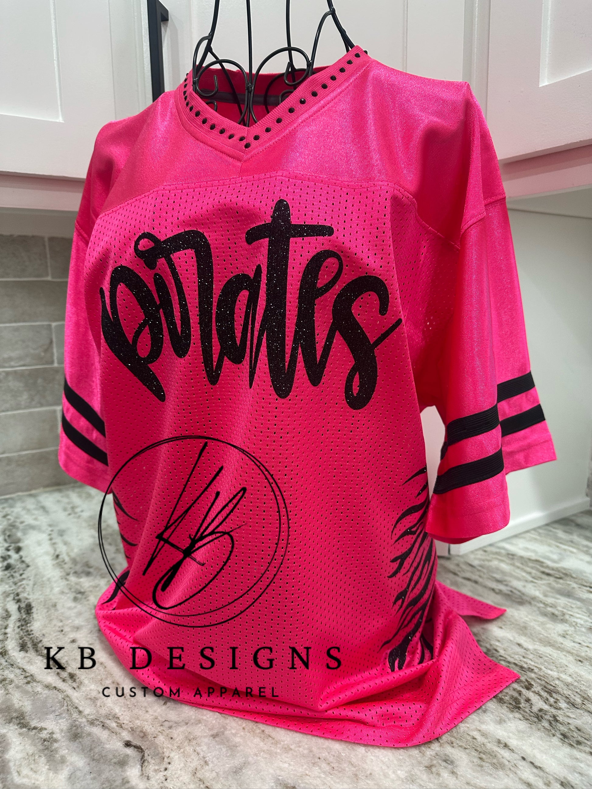 Custom Mascot Tiger Stripe Pinkout Glitter Jersey