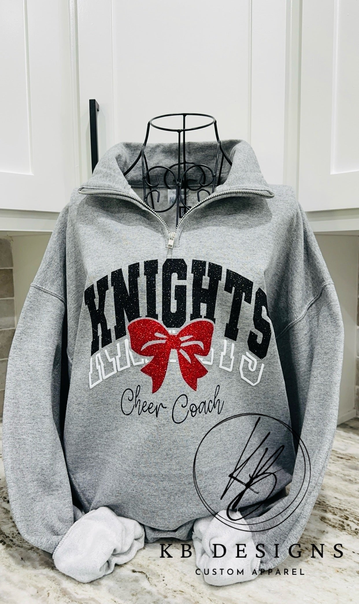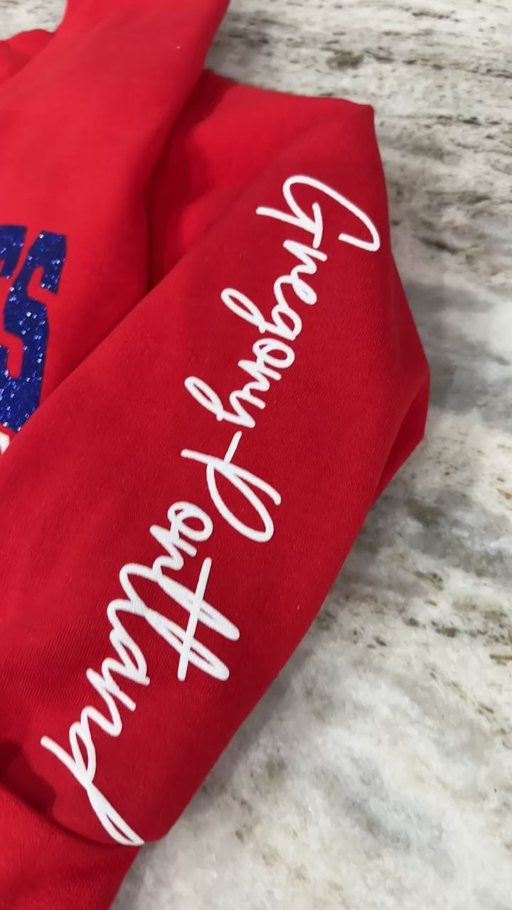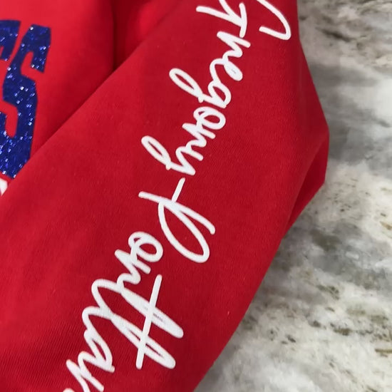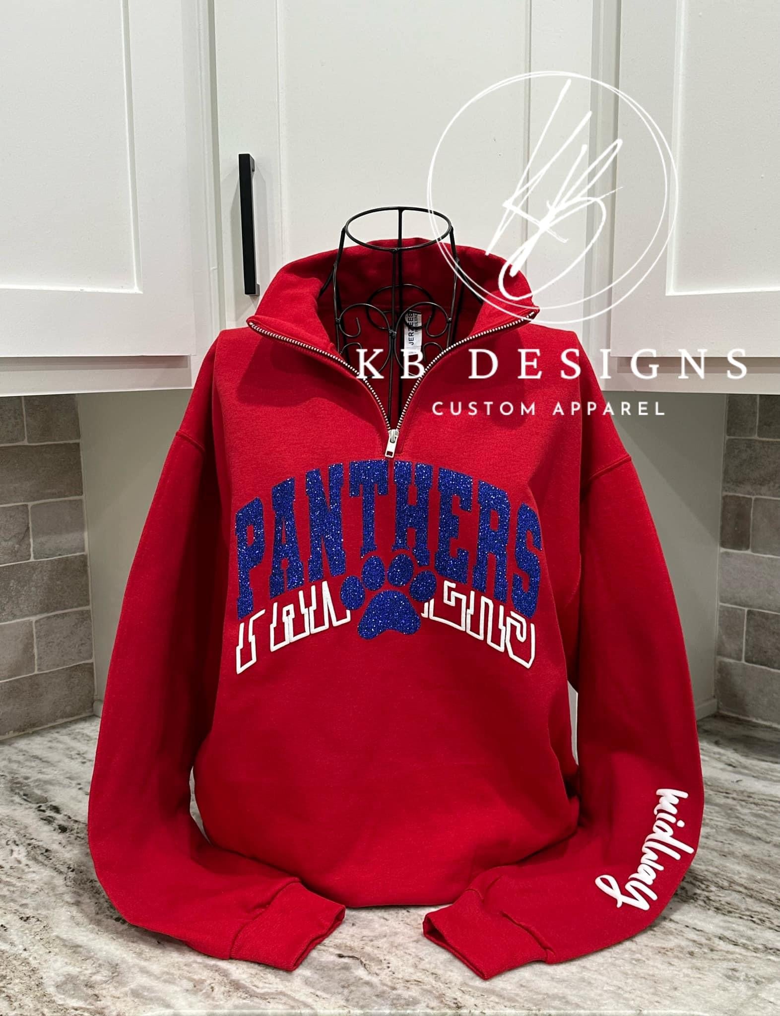 All items are handmade in-house at KB Designs by Christina. Please allow 4-6 weeks for the turnaround time on in-house custom glitter and puff apparel. Keep in mind that the fall season, running from August to November, is our busiest time of the year, and depending on order volume, it may take up to 8 weeks at the longest. These are estimated timeframes, and orders may be completed sooner.