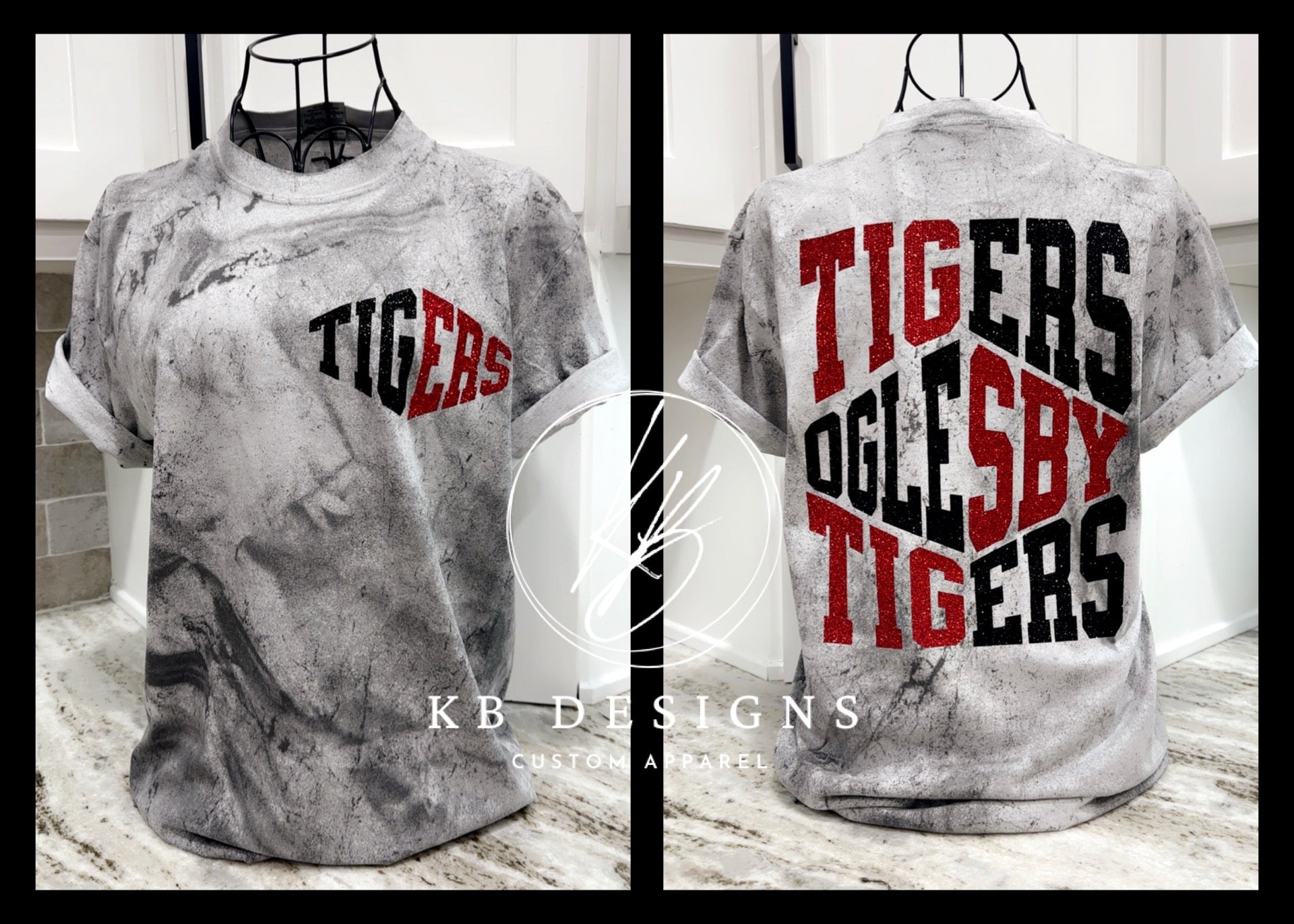 All items are made to order and handcrafted in-house at KB Designs. Because these products are made by hand, please allow some time for processing. Our graphic tees are printed using the latest technology in the garment industry known as Direct To Film (DTF). The estimated turnaround time for graphic tees, spangles, and tote bag designs is 2-3 weeks. For custom glitter and puff apparel, the turnaround time is estimated at 4-6 weeks. Please note that the fall season, which runs from August to November, is our busiest time of year, and during this period, orders may take up to 8 weeks to fulfill at the longest. These are estimated timeframes, and many orders may be completed sooner.