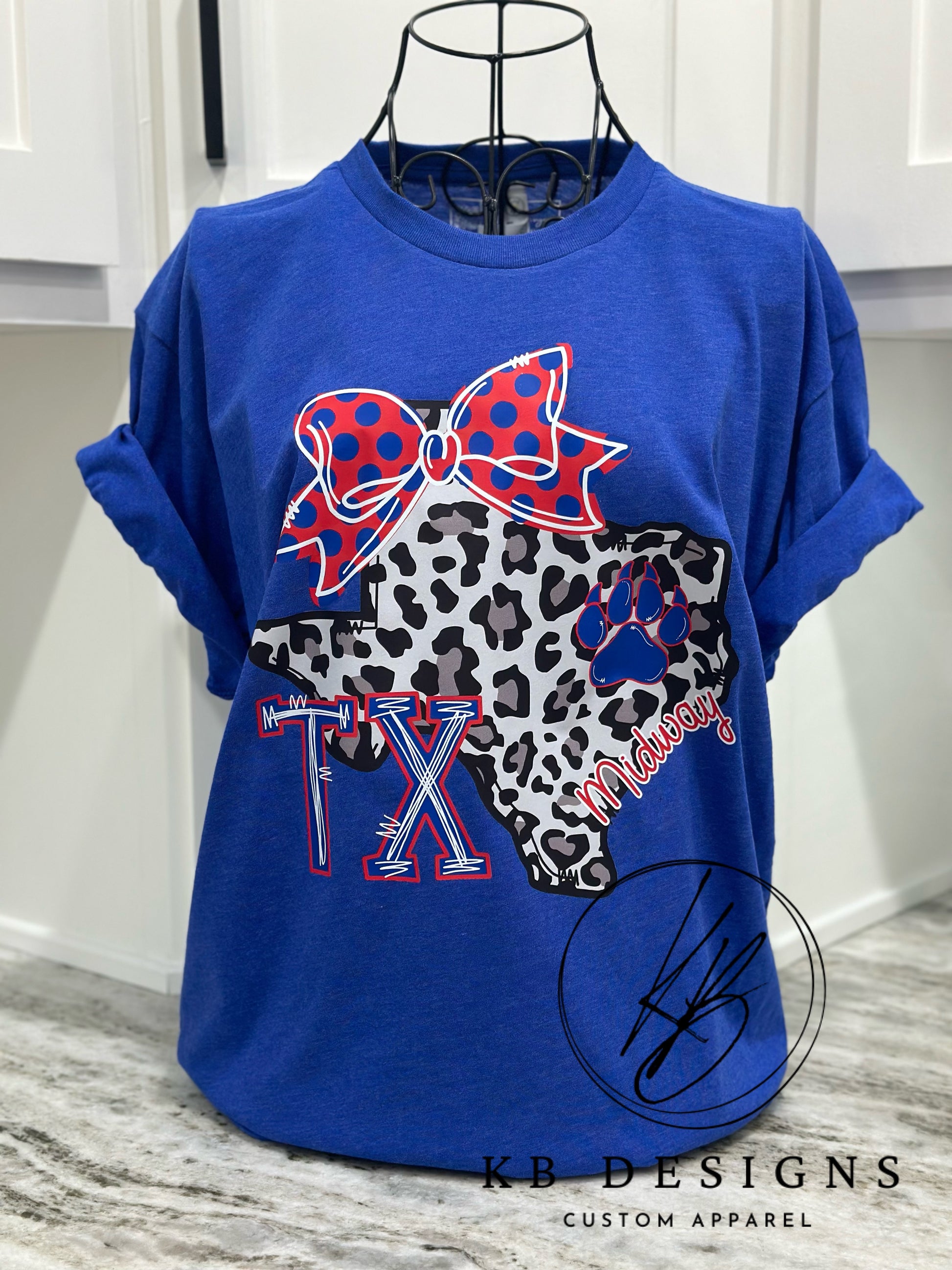 Made in house at KB Designs by Christina. Expect a 7-10 TAT for in house custom graphics. Graphics are printed using a commercial DTF printer which is the newest technology in garment industry Direct To Film ( DTF) .