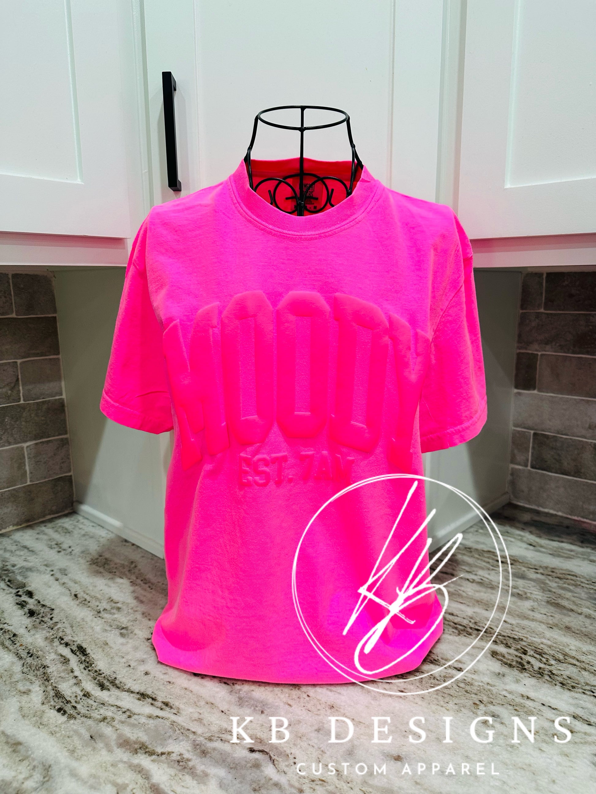 Neon Pink Moody Puff Graphic Tee. List in notes what color Shirt you would like to order. Made in house at KB Designs by Christina. Expect 2-3 week turn around time for in house custom graphics!