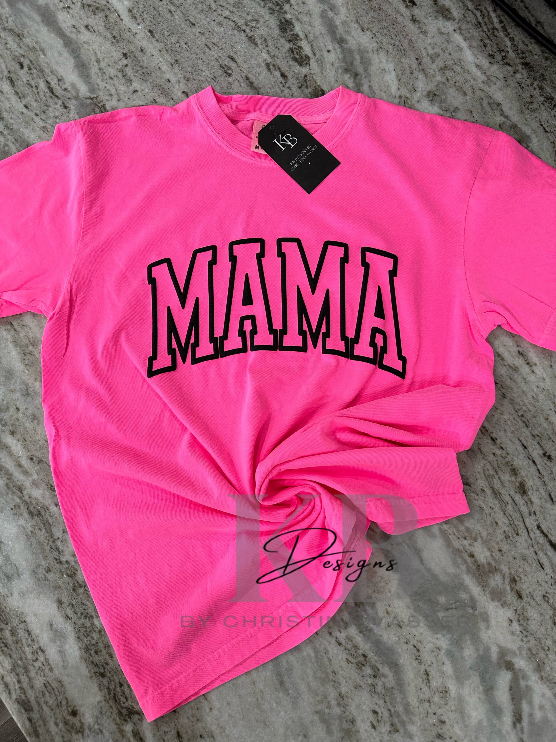 MAMA Neon Summer Puff Tees are comfort colors brand and true to size.The design is made with HTV Puff. List in notes the color of puff and shirt you would like.