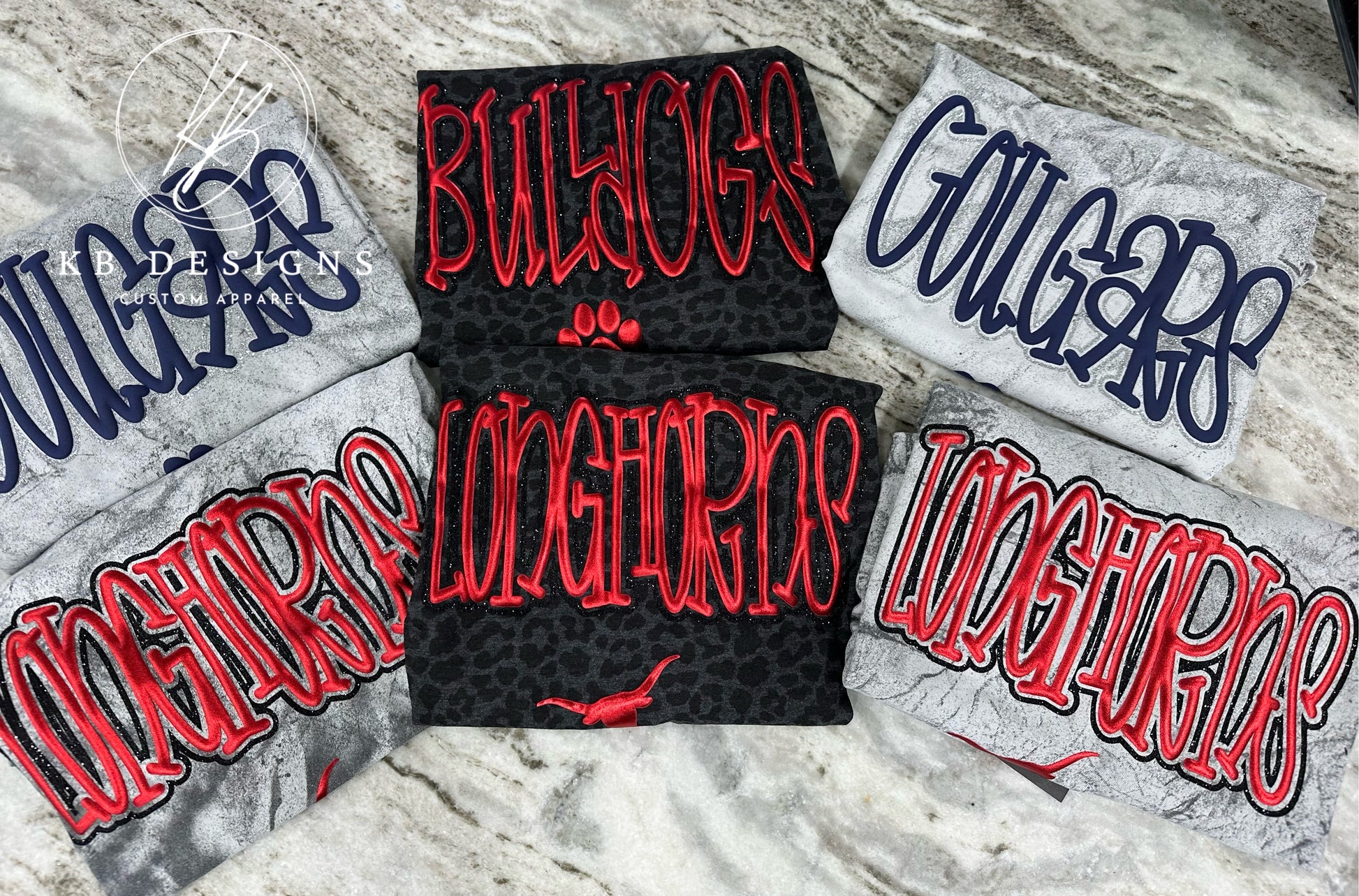 All items are handmade in-house at KB Designs. Please allow 4-6 weeks for the turnaround time on custom apparel designs. Keep in mind that the fall season, running from August to November, is our busiest time, and depending on order volume, it may take up to 8 weeks at the longest. These are estimated timeframes, and orders may be completed sooner.