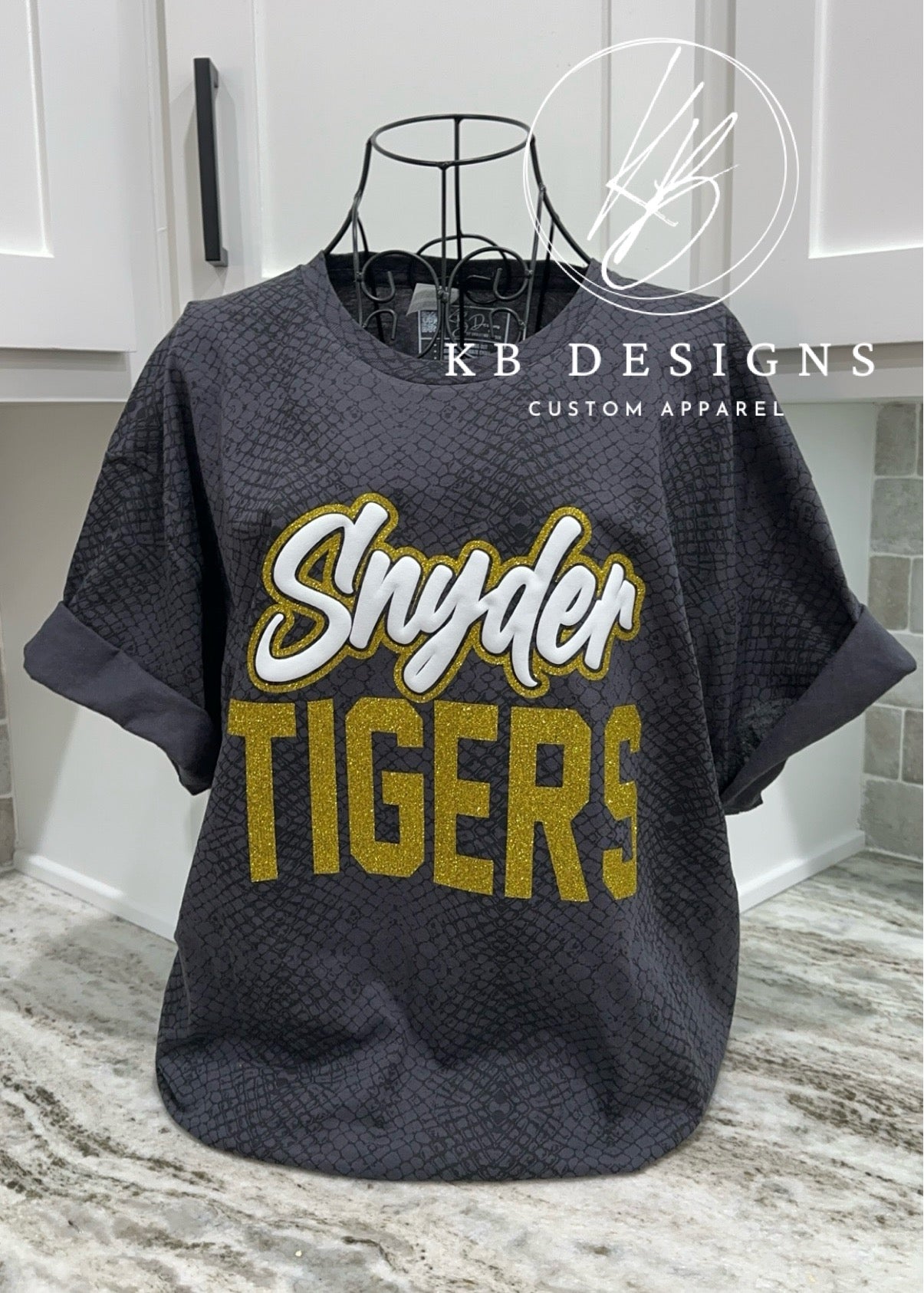 All items are made to order and handcrafted in-house at KB Designs. Because these products are made by hand, please allow some time for processing. Our graphic tees are printed using the latest technology in the garment industry known as Direct To Film (DTF). The estimated turnaround time for graphic tees, spangles, and tote bag designs is 2-3 weeks. For custom glitter and puff apparel, the turnaround time is estimated at 4-6 weeks. Please note that the fall season, which runs from August to November, is our busiest time of year, and during this period, orders may take up to 8 weeks to fulfill at the longest. These are estimated timeframes, and many orders may be completed sooner.