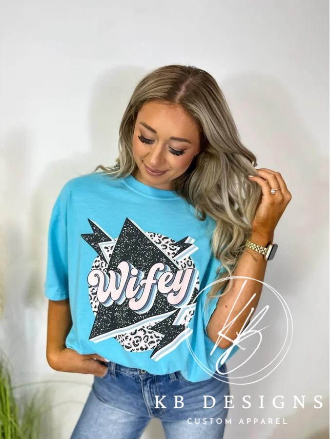 Wifey lightning bolt Graphic tee. Made in house at KB Designs. Expect 2-4 week turn around time for in house graphics! List in custom notes box the color of shirt you would like made.